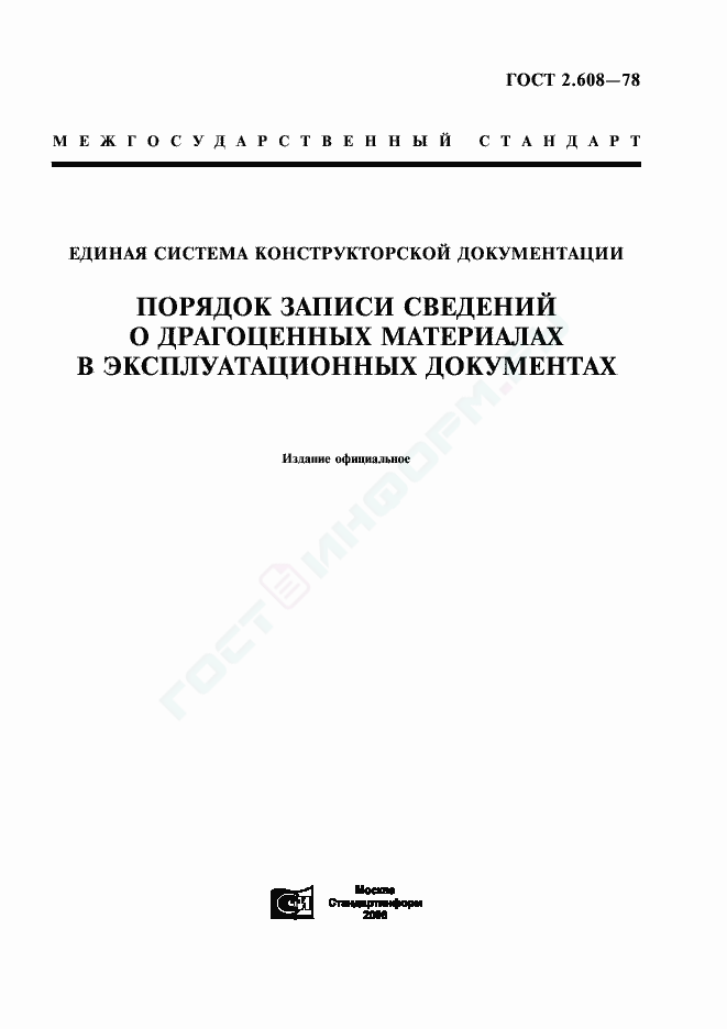 ГОСТ 2.608-78 Единая система конструкторской документации. Порядок записи сведений о драгоценных материалах в эксплуатационных документах