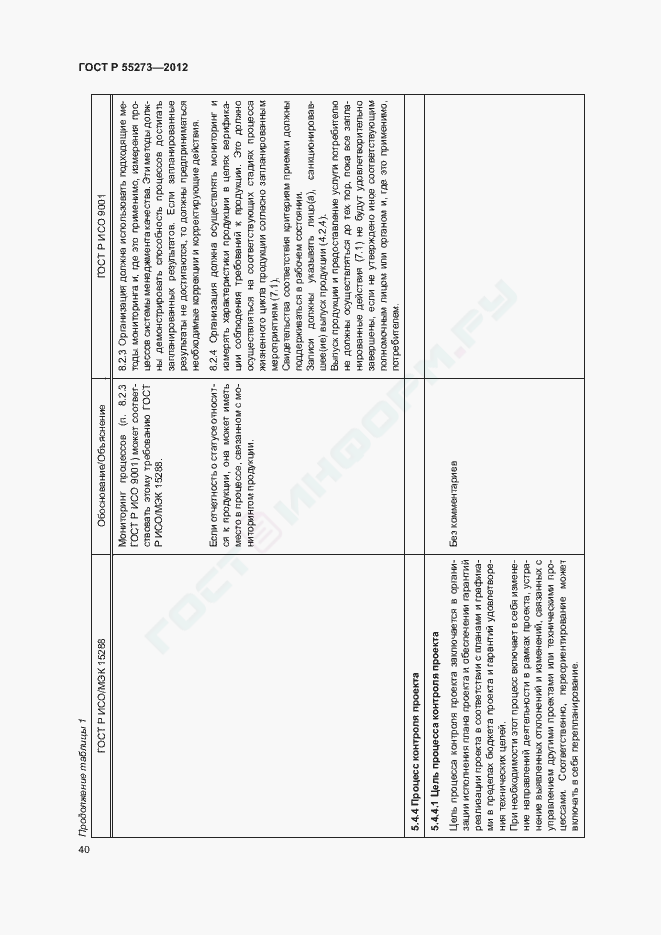 Область и условия применения: Настоящий стандарт устанавливает руководство по применению ГОСТ Р ИСО 9001, необходимое для приобретения, поставки, разработки, производства и эксплуатации систем и связанных с ними услуг по поддержанию и обеспечению функционирования этих систем. Он не устанавливает дополнительных и не изменяет требований ГОСТ Р ИСО 9001. Руководящие указания, приведенные в настоящем стандарте, не предназначены для использования в качестве критериев оценки при регистрации или сертификации систем менеджмента качества.