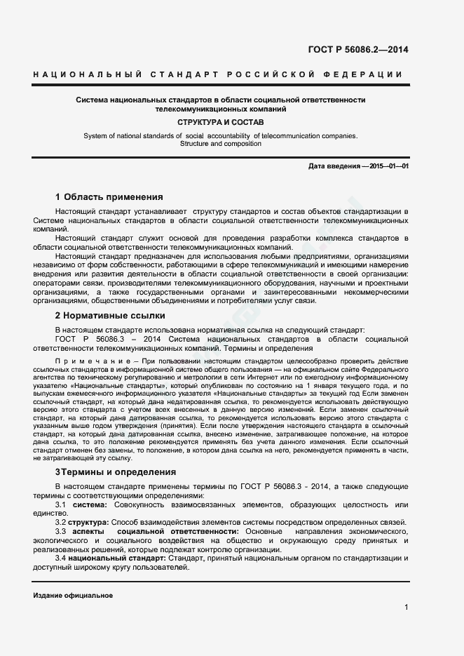 ГОСТ Р 56086.2-2014 Система национальных стандартов в области социальной ответственности телекоммуникационных компаний. Структура и состав