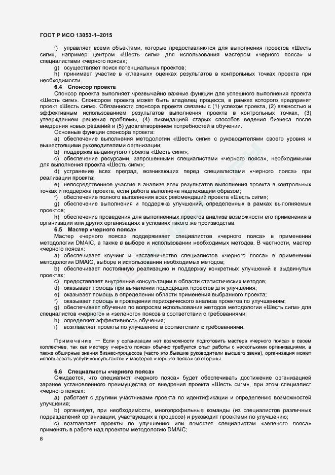 ГОСТ Р ИСО 13053-1-2015 Статистические методы. Количественные методы улучшения процессов Шесть сигм. Часть 1. Методология DMAIC