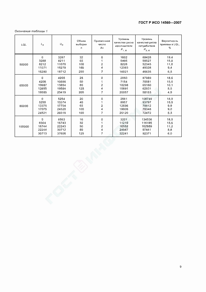 ГОСТ Р ИСО 14560-2007 Статистические методы. Процедуры выборочного контроля по альтернативному признаку. Уровни качества в несоответствующих единицах продукции на миллион