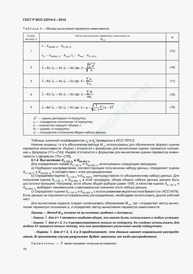 Область и условия применения: В настоящем стандарте установлены методы определения статистик для оценки воспроизводимости и пригодности характеристик процесса или продукции. В стандарте рассмотрено восемь возможных видов распределений этих характеристик. Для каждого распределения приведены формулы расчета статистик.